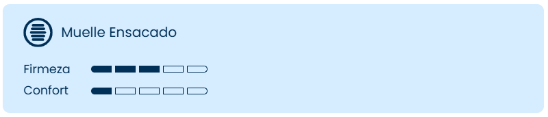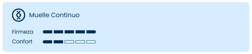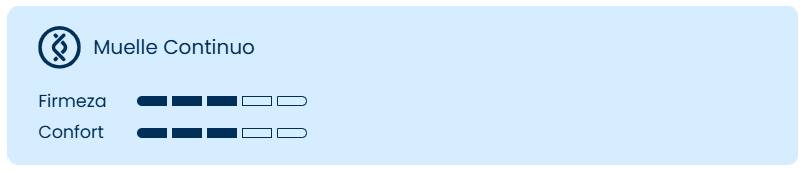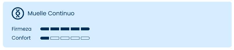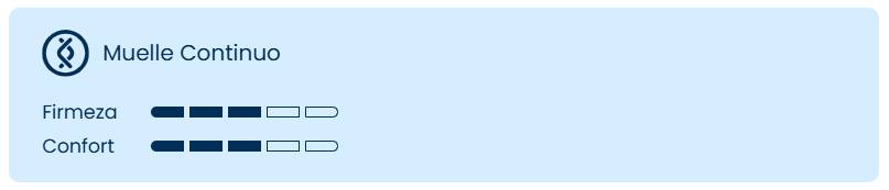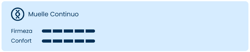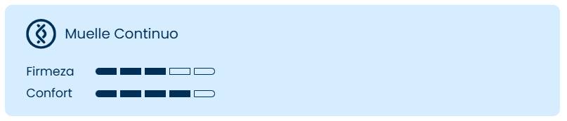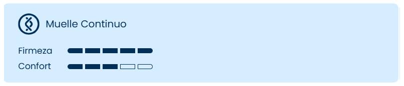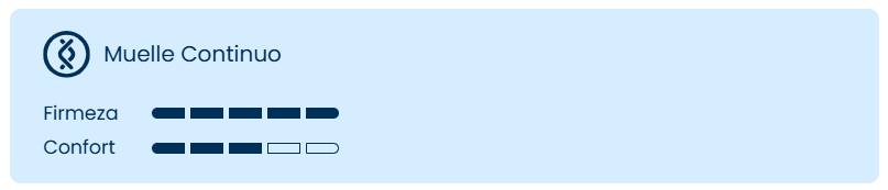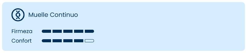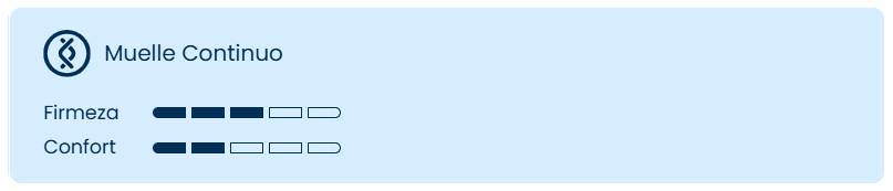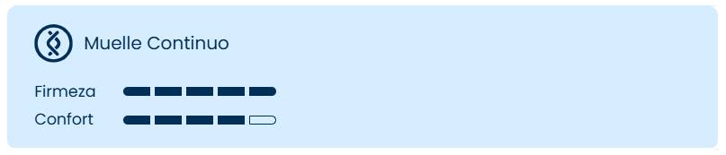 Es considerado un colchón firme, ya que incorpora un núcleo de muelles continuos Multielástic® NxT y acolchados que están enfocados a mejorar el confort, la adaptabilidad y a conseguir un descanso reparador de calidad.
